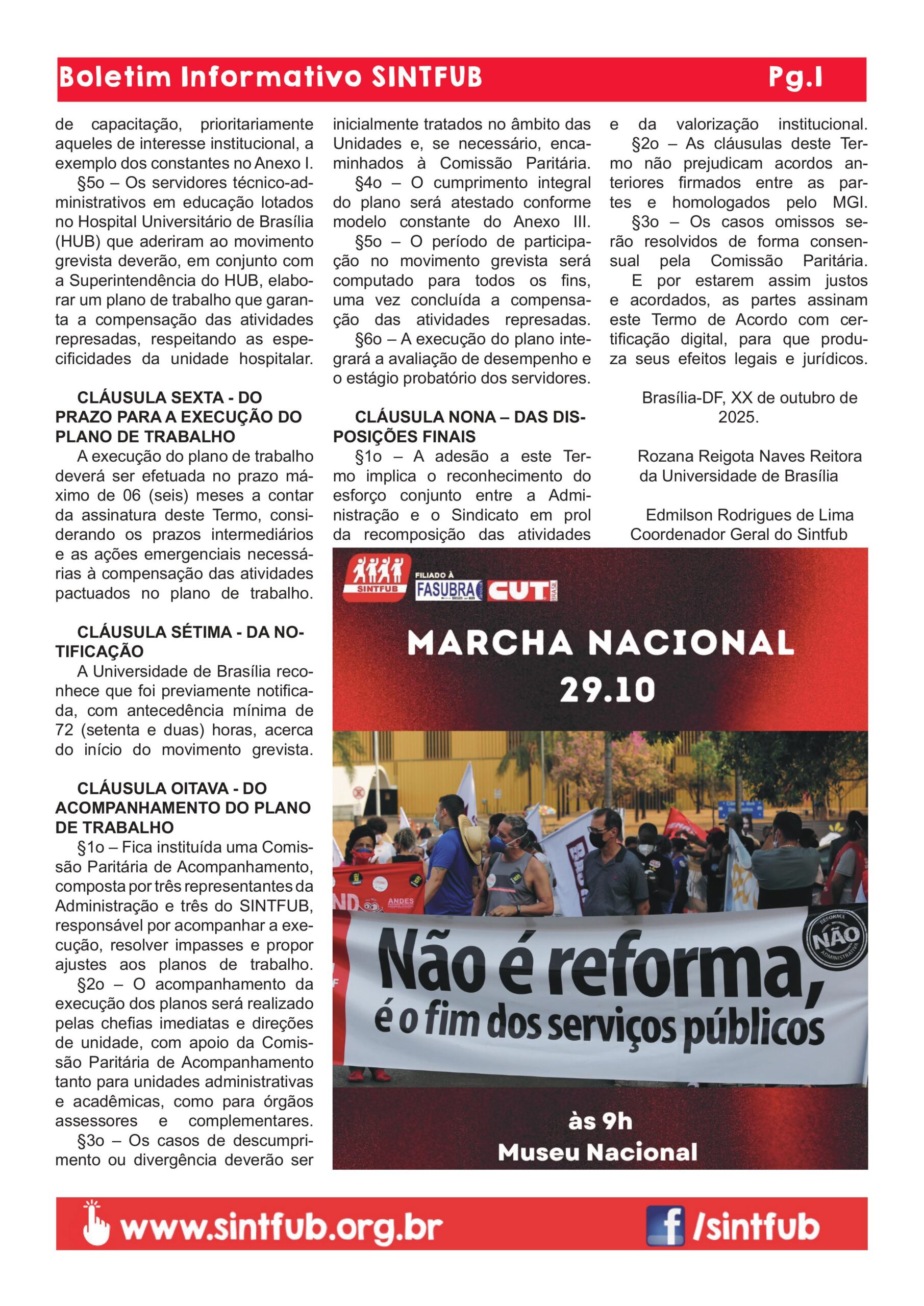 1. SINTFUB negocia acordo de encerramento da greve (pág. 1 e 2)