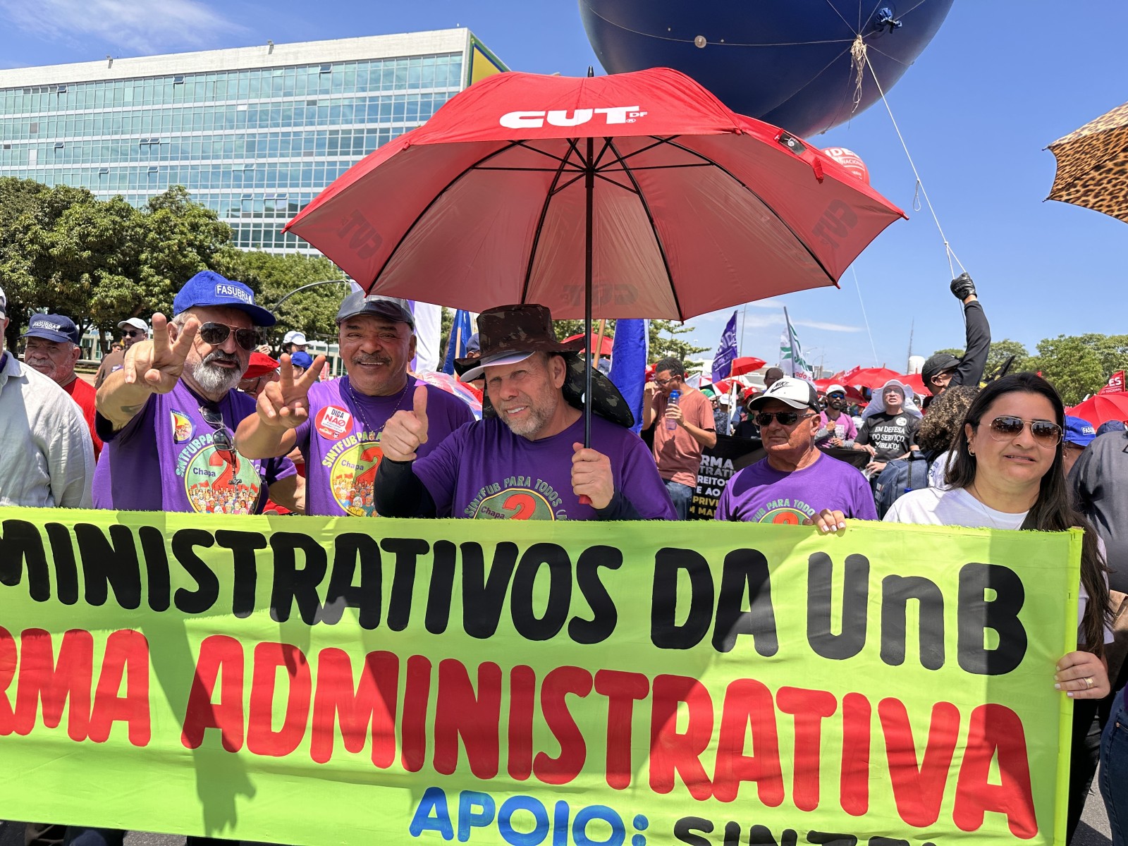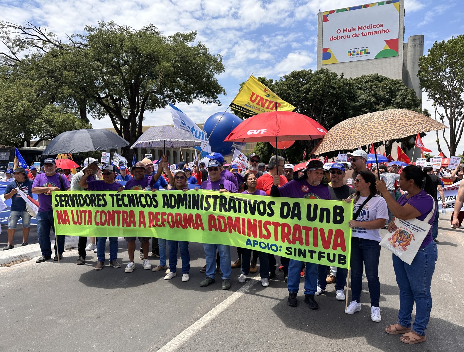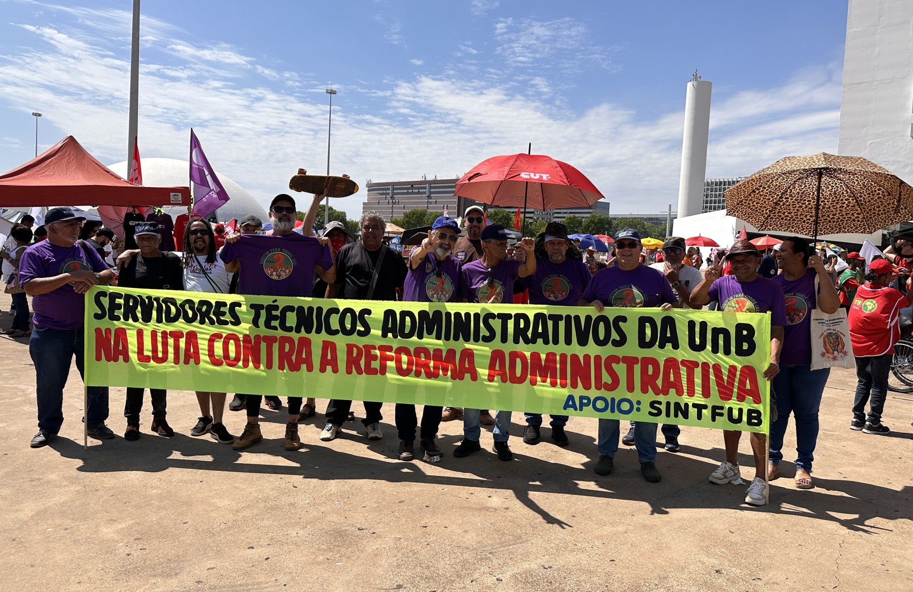 A mobilização contou com a participação ativa de diversas categorias, incluindo servidores técnico-administrativos da UnB, conforme convocação do SINTFUB. “É uma primeira mobilização como deve ser, unificada e nas ruas, para uma crescente luta para derrotar esse ataque aos serviços públicos e ao funcionalismo”, declarou Edmilson Rodrigues de Lima, da coordenação do SINTFUB, reforçando a importância da luta coletiva para barrar essa reforma que ameaça o caráter público e democrático do serviço público brasileiro.