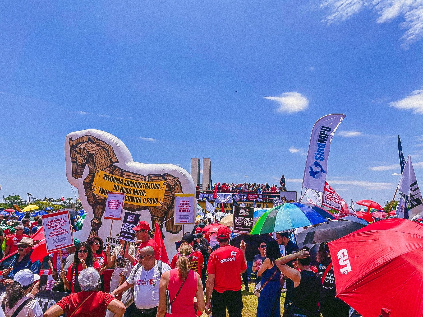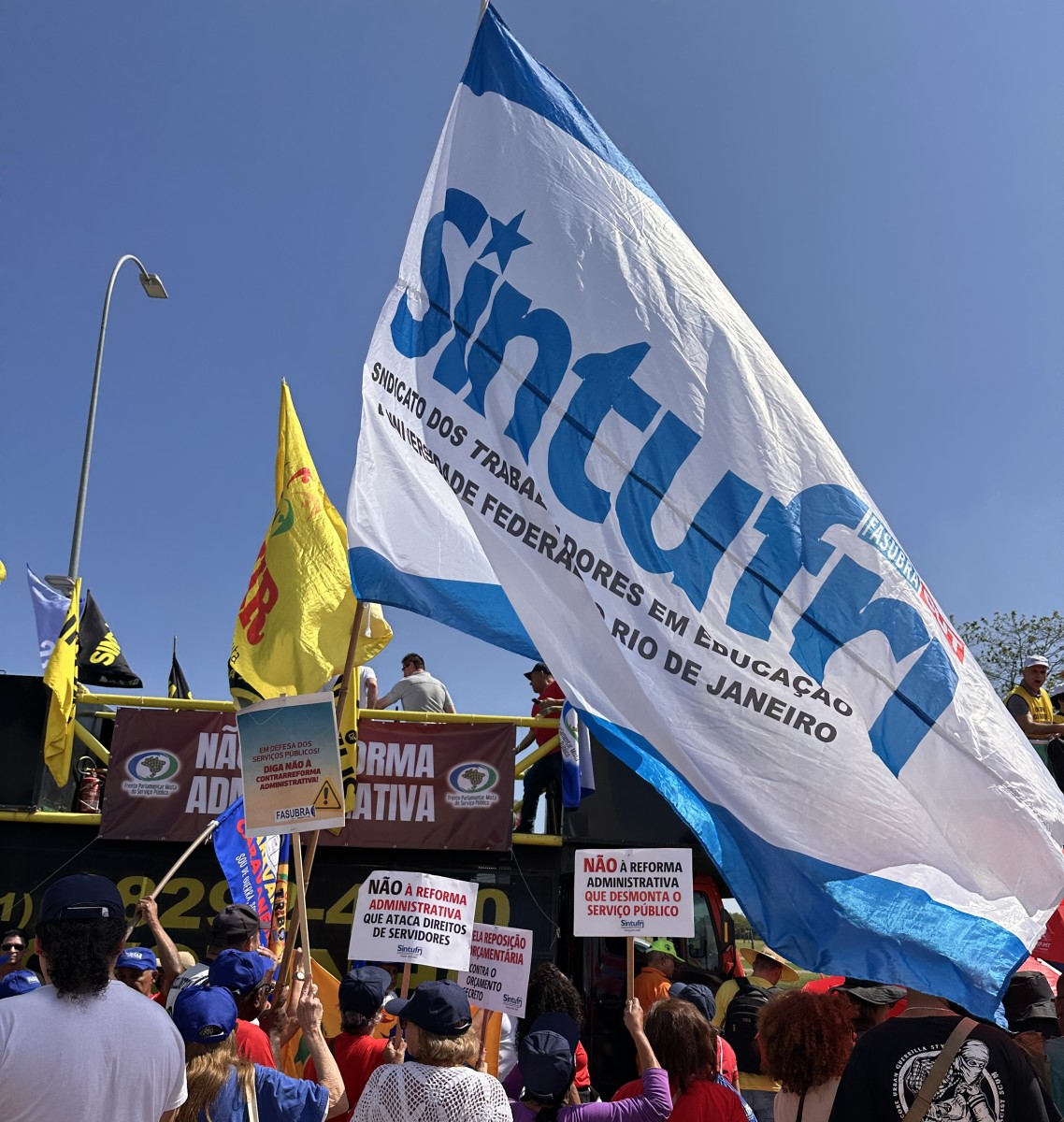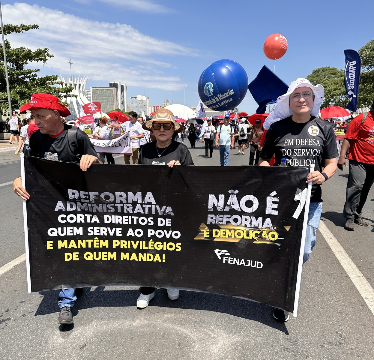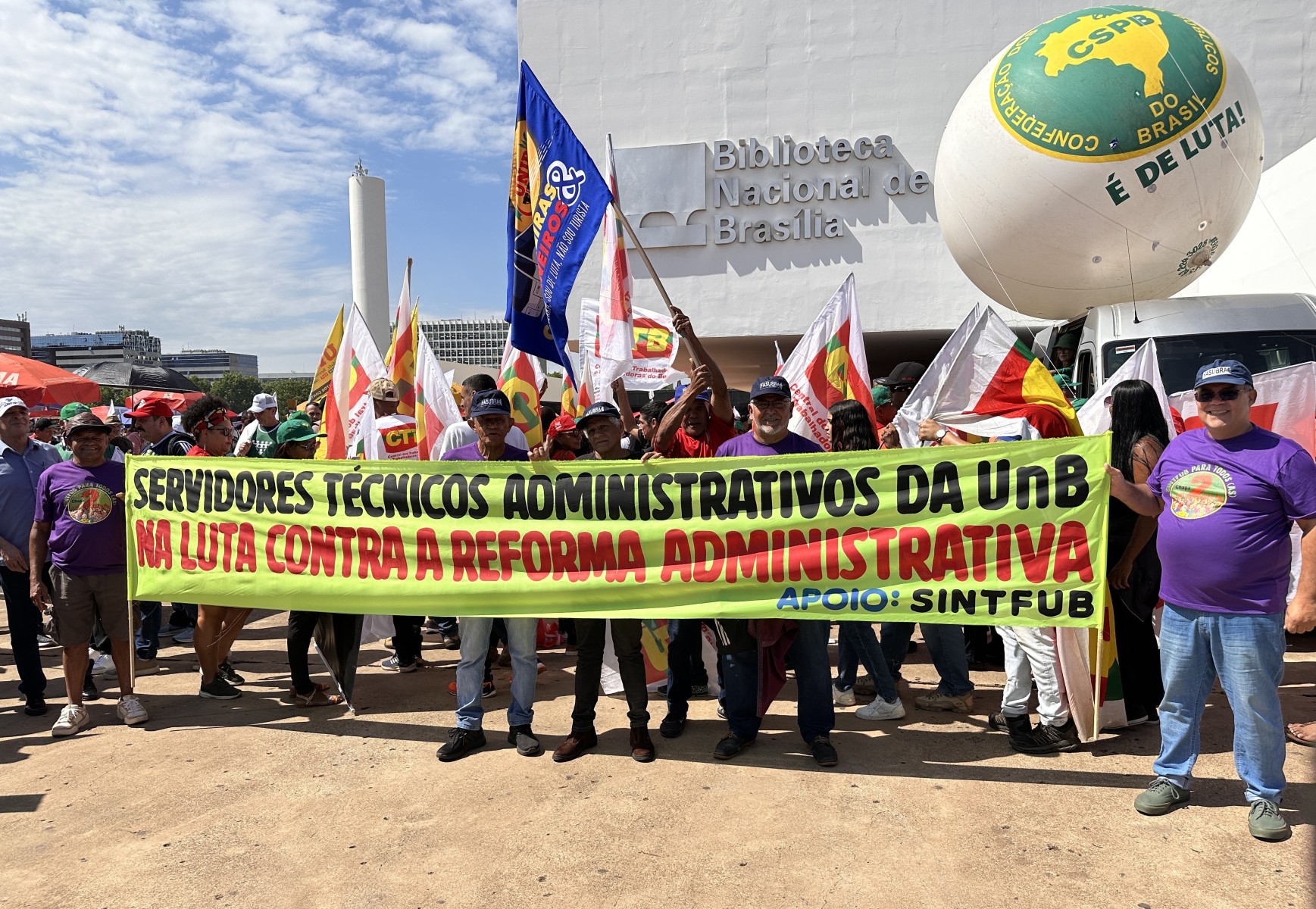 A mobilização contou com a participação ativa de diversas categorias, incluindo servidores técnico-administrativos da UnB, conforme convocação do SINTFUB. “É uma primeira mobilização como deve ser, unificada e nas ruas, para uma crescente luta para derrotar esse ataque aos serviços públicos e ao funcionalismo”, declarou Edmilson Rodrigues de Lima, da coordenação do SINTFUB, reforçando a importância da luta coletiva para barrar essa reforma que ameaça o caráter público e democrático do serviço público brasileiro.