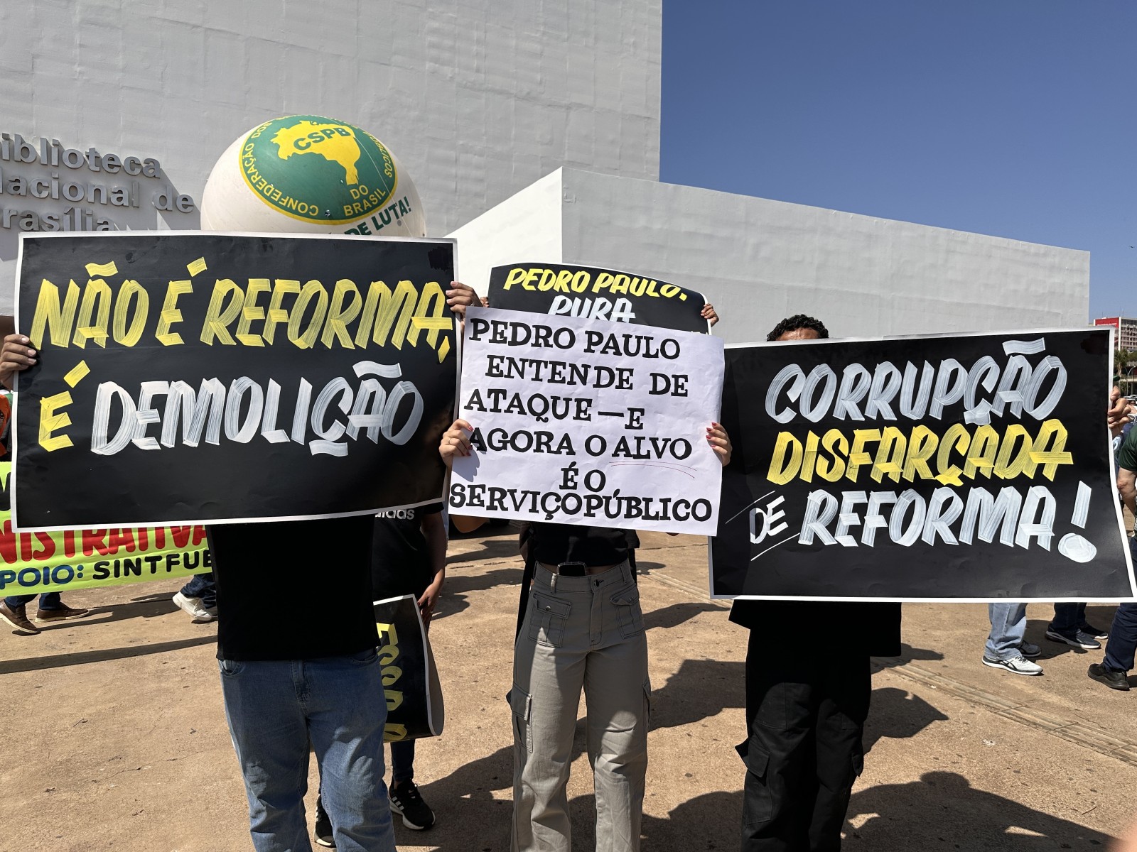 A proposta de Reforma Administrativa (PEC 38/2025), atualmente em tramitação no Congresso Nacional, foi o alvo principal do protesto. Essa proposta, relatada pelo deputado Pedro Paulo (PSD-RJ), prevê mudanças profundas como: flexibilização da estabilidade no serviço público, criação de novos vínculos trabalhistas com menos garantias, ampliação de cargos comissionados e enfraquecimento das carreiras públicas tradicionais. Alterações que representam uma ameaça direta aos direitos conquistados historicamente e à qualidade dos serviços prestados à população.