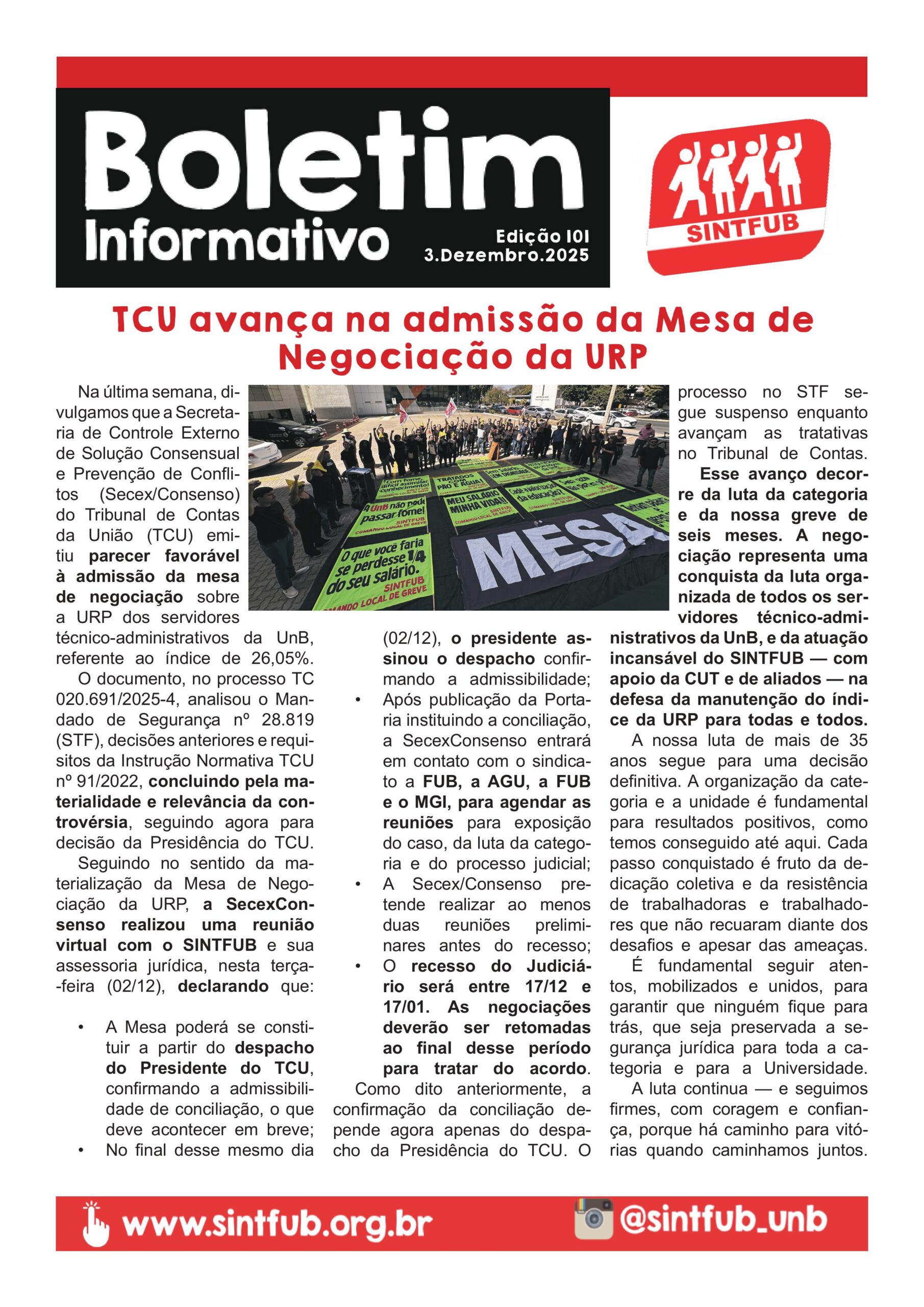 1. TCU avança na admissão da Mesa de Negociação da URP (pág. 1)