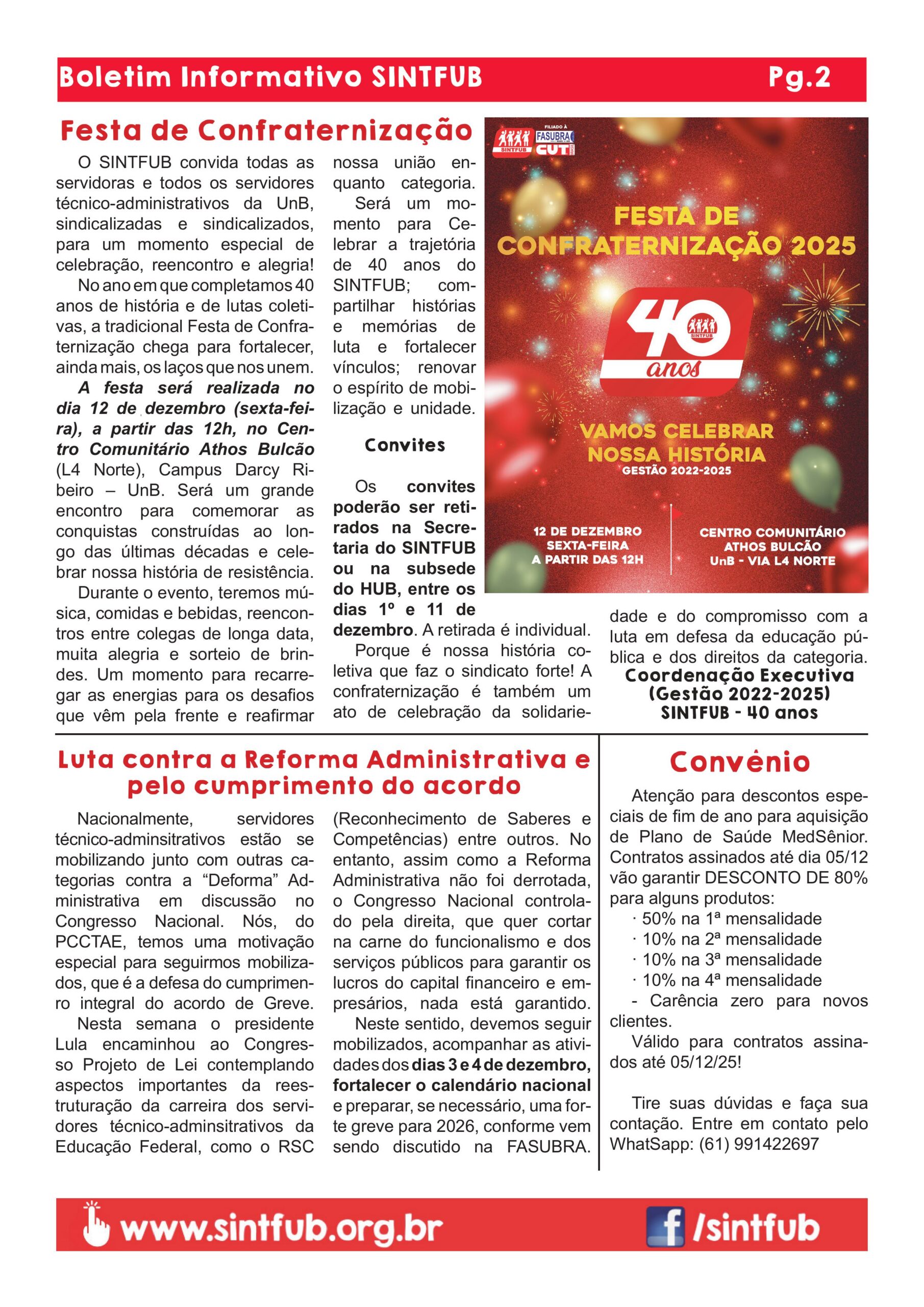 2. Festa Confraternização 2025, nos 40 anos do SINTFUB! (pág. 2)