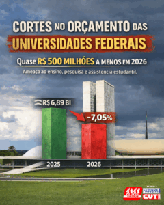 O SINTFUB repudia os cortes de quase R$ 500 milhões no orçamento discricionário das universidades federais para 2026, aprovados pelo Congresso Nacional, que ameaçam o funcionamento essencial das instituições de Educação Superior públicas no Brasil.