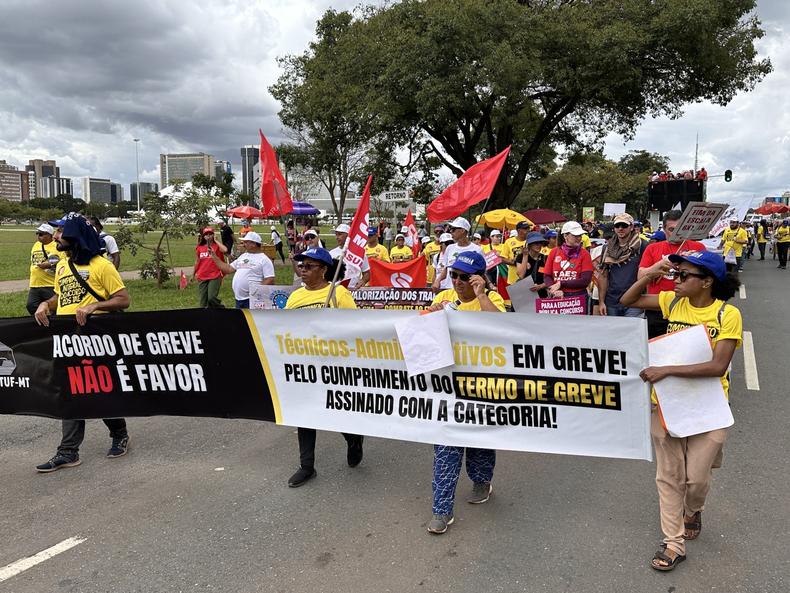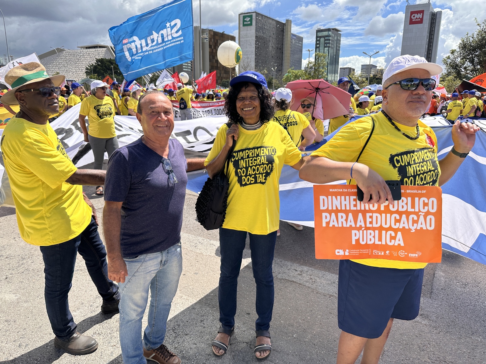A Marcha da Classe Trabalhadora, realizada nesta quarta-feira (15/4), reuniu milhares de trabalhadoras e trabalhadores de todo o país em defesa de direitos, valorização profissional e melhores condições de trabalho. O ato contou com a participação de diversas entidades sindicais e movimentos sociais, entre eles o Sindicato dos Trabalhadores da Fundação Universidade de Brasília (SINTFUB), que marcou presença fortalecendo a mobilização nacional.