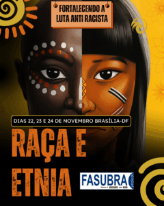 Ocorrerá em Brasília nos dias 22, 23 e 24 de novembro, o Encontro de Raça e Etnia da FASUBRA. Sob o tema central “Fortalecendo a luta antirracista”, este evento representa um passo decisivo na construção de políticas e ações efetivas para combater o racismo e todas as formas de discriminação dentro das Instituições Federais de Ensino (IFE) e no movimento sindical.