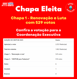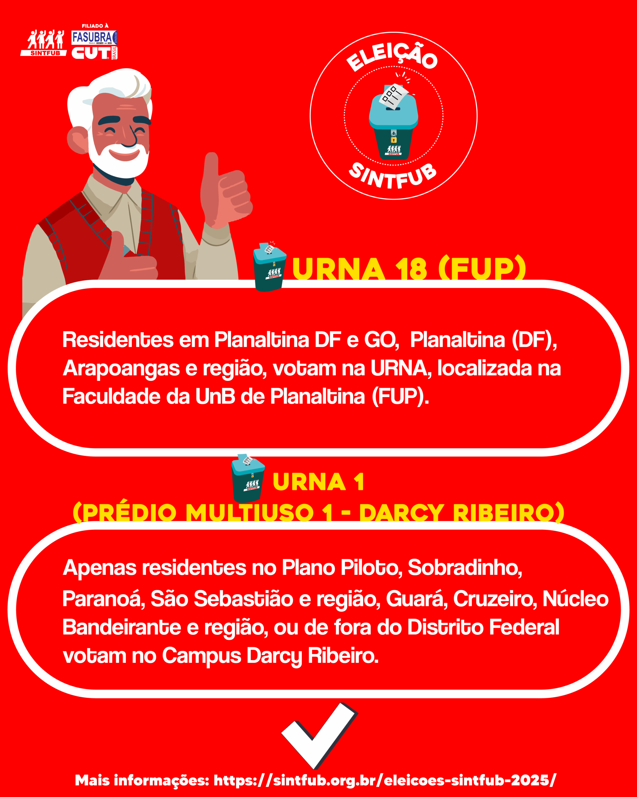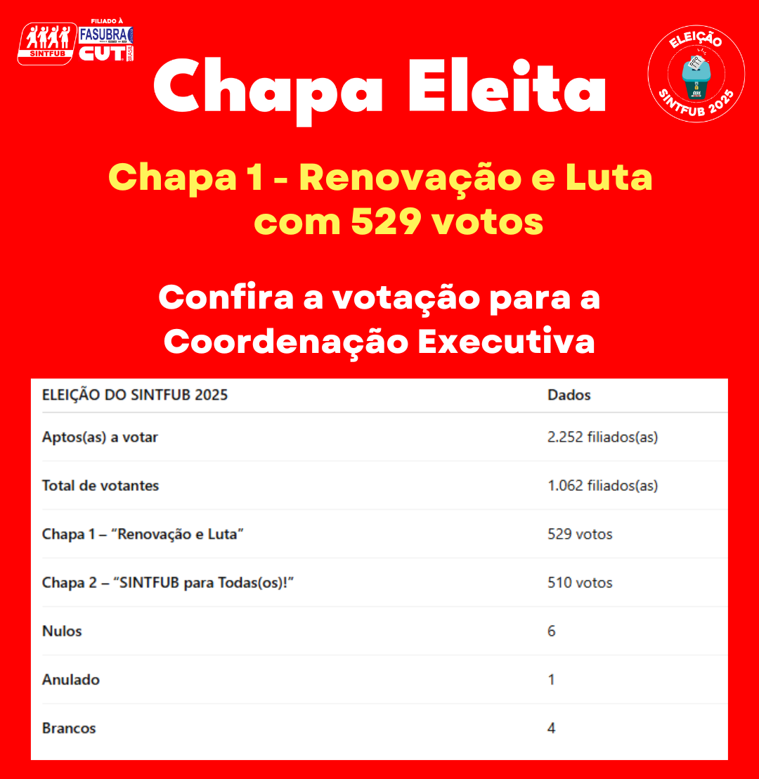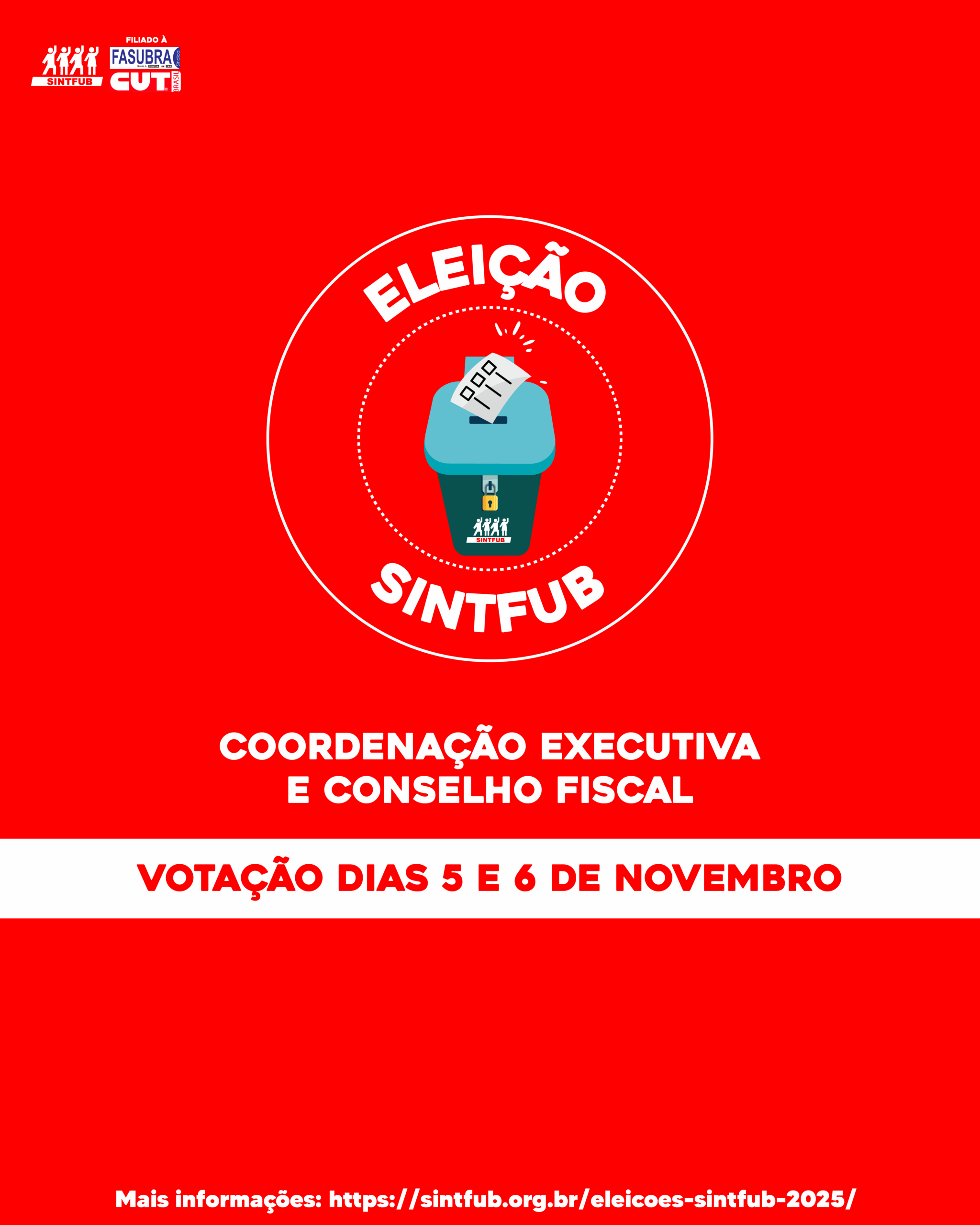 Mais informações https://sintfub.org.br/eleicoes-sintfub-2025/
