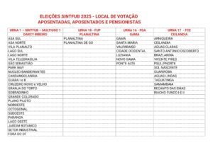 No caso de aposentadas(os) e pensionistas, vale a mesma regra anterior, a urna de votação para a é a mais próxima da sua residência. Veja abaixo a relação das urnas, lembrando que o voto é para integrante da CIS: