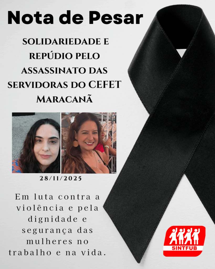 O SINTFUB manifesta profundo pesar pelo trágico assassinato das servidoras Allane de Souza Pedrotti Matos e Layse Costa Pinheiro, ocorrido no CEFET Maracanã (RJ). Este ato de violência, motivado por questões de gênero e cometido por um colega de trabalho, revela, de forma assustadora, a persistência da violência contra as mulheres, especialmente nos ambientes laborais,