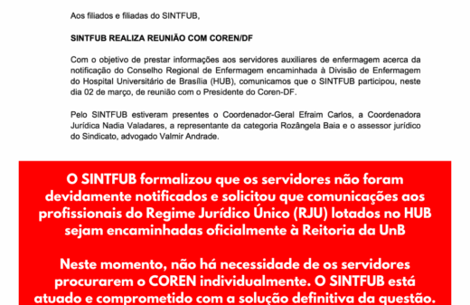 O SINTFUB disponibiliza aqui os Informes de Direção da FASUBRA do mês de fevereiro, de 2026. O ID N°...