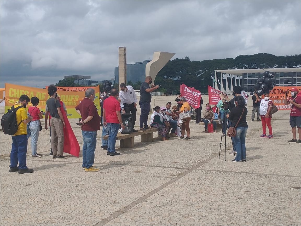 O ato também cobrou a vacinação imediata para todos os brasileiros e o auxílio emergencial de R$ 600,00 para a população pobre até o fim da pandemia.