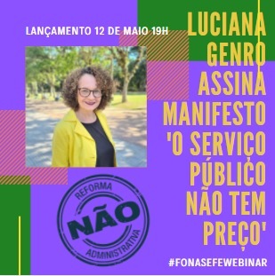 O Fonasefe lançou ontem (12/05) o Manifesto “O Serviço Público Não Tem Preço” – que teve a adesão de diversos parlamentares, figuras públicas e entidades políticas: