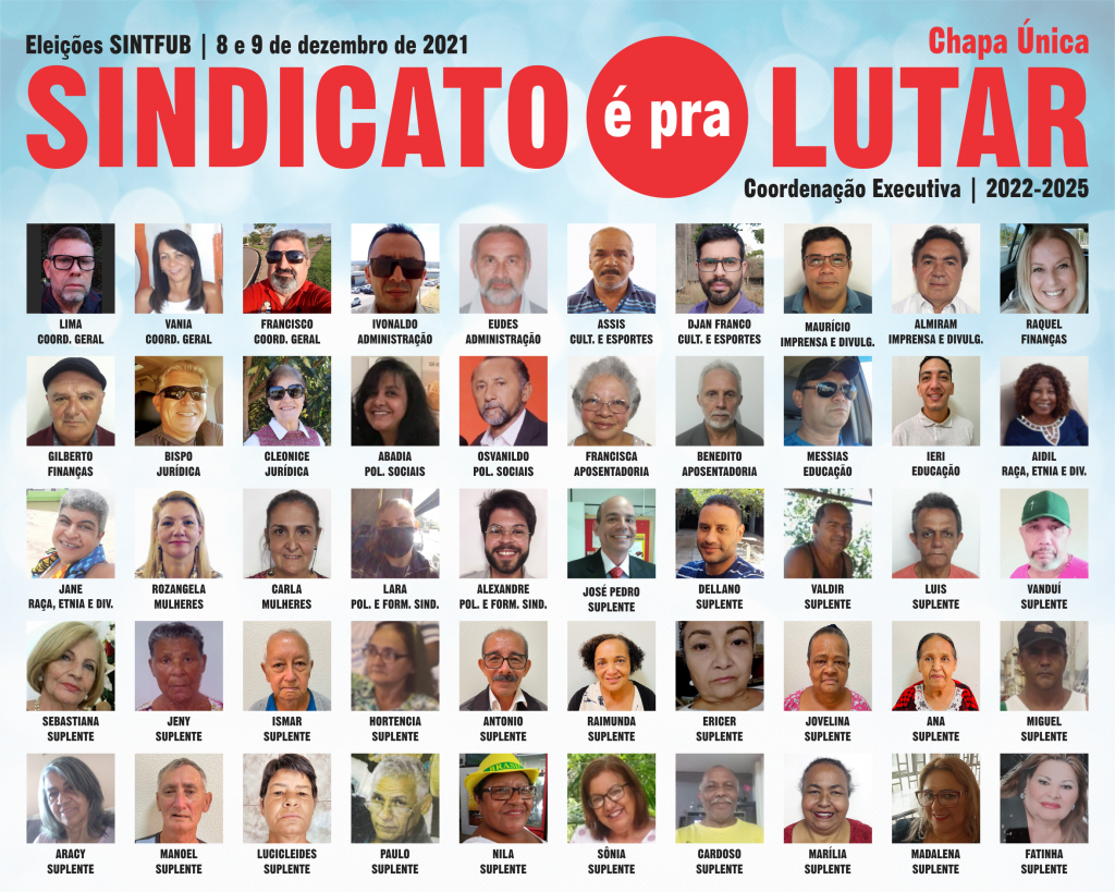 eleição para a Coordenação Executiva do SINTFUB, a ser realizada nos dias 8 e 9 de dezembro de 2021, teve uma única chapa inscrita: a chapa 1, Sindicato é pra lutar.