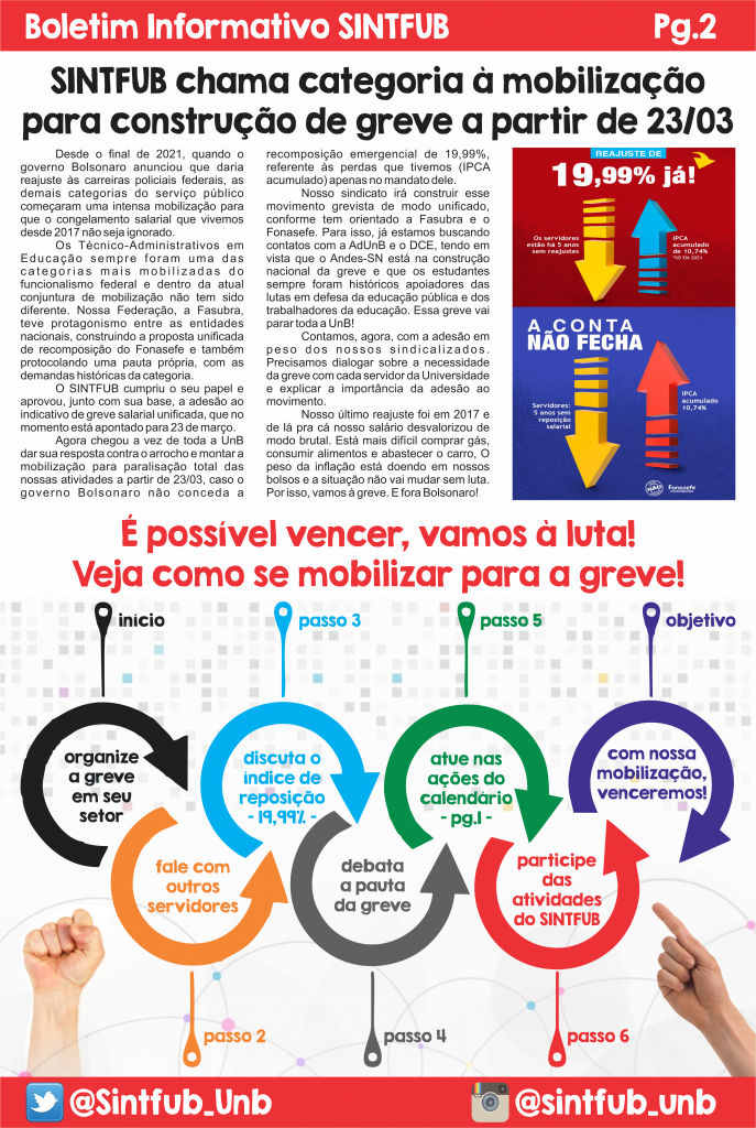 O SINTFUB lança nesta quarta-feira (23/02) seu Boletim Informativo nº 12, tendo como pautas: